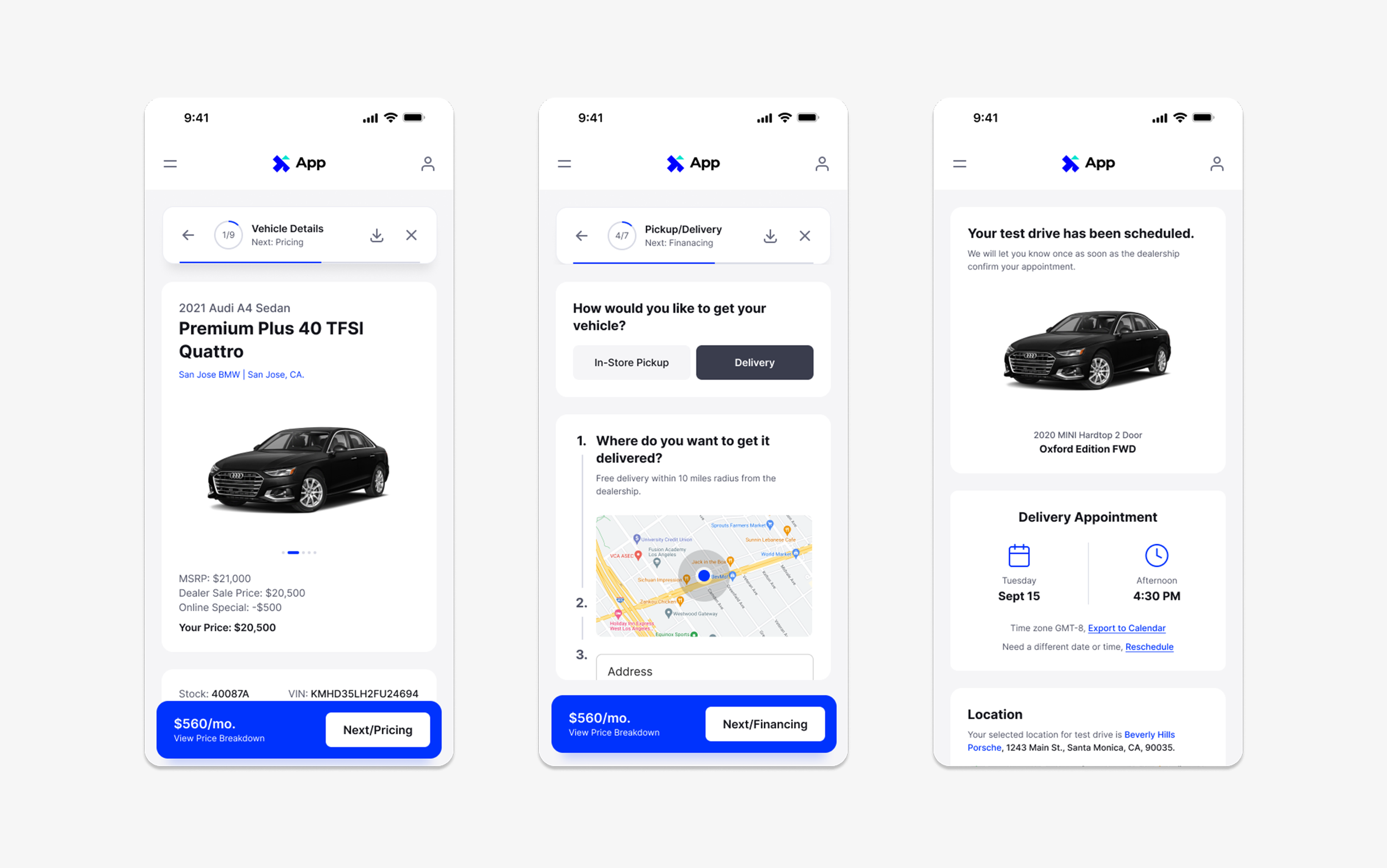 Trust: The app does not ask for any personal information before price is configured and calculated, and the user is onboarded once the entire deal is configured. This was a major pain point users had with other digital retailing tools.
