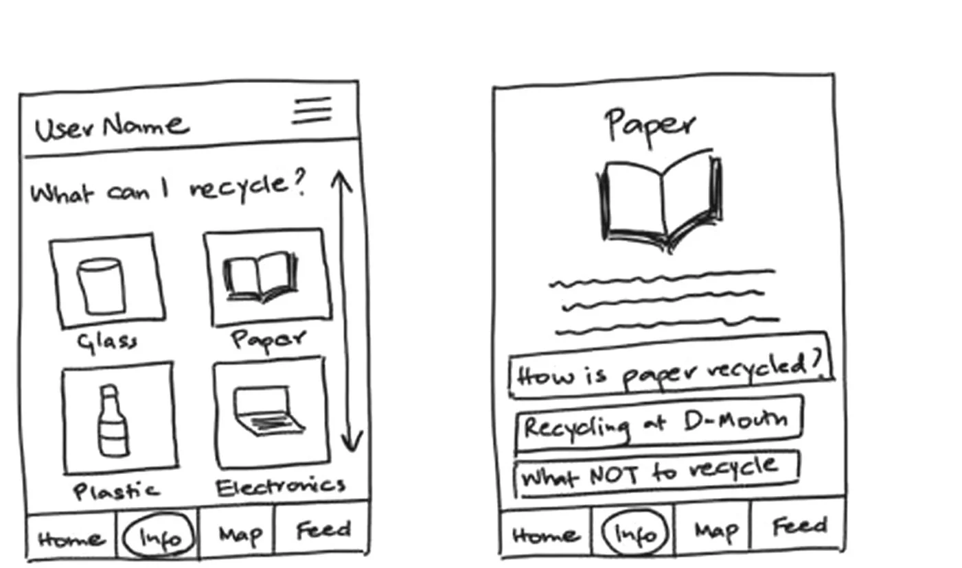 The app prototype was to be coupled with new sensor technology on ārecycling portsā distributed all over campus that would record the recycling activities of students and collect data. The idea of the app was not only to increase recycling on campus but also increase education and awareness on the recycling process in general and how different materials are recycled. This would consequently encourage students to recycle more in their daily lives, even when they are off-campus.