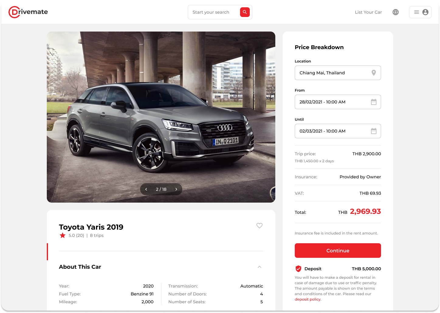 Drivemate is a leading multi-product mobility platform in Thailand that specializes in car rental, subscription and insurance services. In early 2021 Drivemate launched a redesign project to rebrand their online platform for web and mobile and transform their visual design to be more competitive in the market.