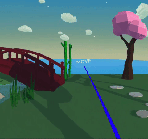 By highlighting a current graspable object (rocks, grasses, and bamboos) with the line renderer, the user can hold the trigger and drag the object to a new location.
