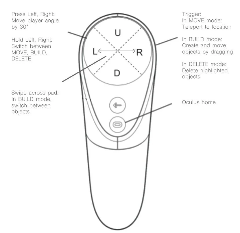 Users can toggle between MOVE, BUILD and DELETE mode by long pressing on either the left or right side of the touchpad.